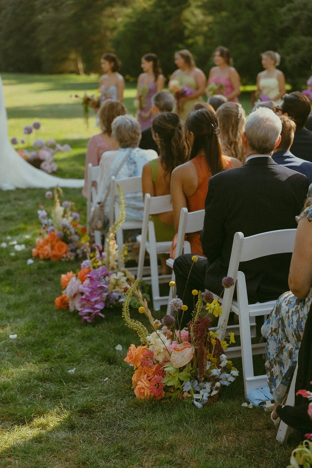 Textural, character-rich blooms shaped the arrangements throughout the day: Gladiator alliums, Dutch-grown hydrangeas, bells of Ireland, electric pink phalaenopsis orchids, and cascading amaranthus created depth and contrast, layering softness with structure.