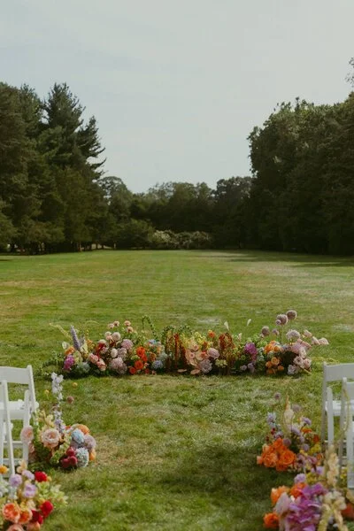Margaret and Elijah wanted a wedding that felt joyful, expressive, and unmistakably theirs. Inspired by the bridal party palette, the floral design leaned into unexpected combinations of raspberry sorbet, baby blue, lilac, lemon, and sage, bringing movement and personality into a traditionally stately setting.